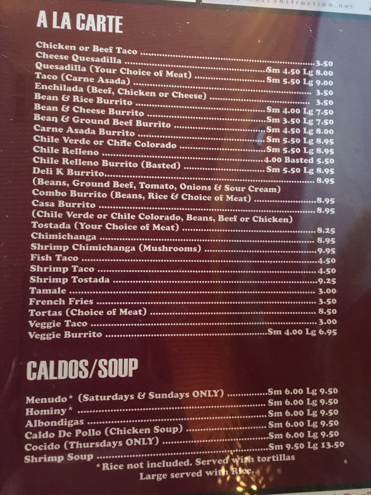Introducing "Deli Casa," a charming Mexican eatery located at 1536 California Kingsburg, CA, this restaurant shines with its vibrant menu and inviting atmosphere. Deli Casa specializes in hearty, flavorful dishes, from the beloved Deli K Burrito to the comforting Cocido special on Thursdays. Customers rave about the homemade corn tortillas, which beautifully complement the well-seasoned meats. The menu caters to all tastes, with options like tacos, enchiladas, and party trays ideal for gatherings.